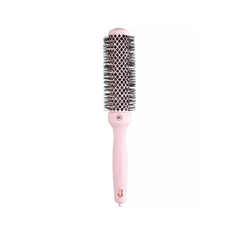 ČETKA EXPERT BLOWOUT SPEED XL 35mm Pastel pink – profesionalna okrugla četka za kosu Olivia Garden Expert Blowout Speed XL Pastel Pink namijenjena je sušenju kose fenom. Posebne valovite najlonske čekinje omogućuju nježnije oblikovanje i sprječavaju oštećenje kose. Površina četke s tehnologijom Ceramic+Ion učinkovito sprječava elektricitet u kosi, čineći je ravnom i sjajnom. Keramička površina ravnomjerno i brzo raspoređuje toplinu fena po cijeloj četki. Veliki otvori omogućuju bolji protok zraka, što rezultira bržim, preciznijim i glađim stiliziranjem. Ergonomska gumirana drška savršeno leži u svakoj ruci, a dodatno se u dršci nalazi izvlačivi špic koji olakšava oblikovanje frizure.