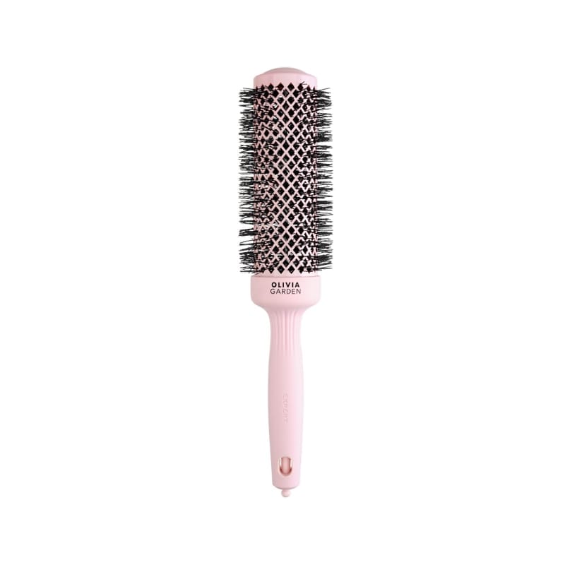 ČETKA EXPERT BLOWOUT SPEED XL 45mm Pastel pink – profesionalna okrugla četka za kosu Olivia Garden Expert Blowout Speed XL Pastel Pink namijenjena je sušenju kose fenom. Posebne valovite najlonske čekinje omogućuju nježnije oblikovanje i sprječavaju oštećenje kose. Površina četke s tehnologijom Ceramic+Ion učinkovito sprječava elektricitet u kosi, čineći je ravnom i sjajnom. Keramička površina ravnomjerno i brzo raspoređuje toplinu fena po cijeloj četki. Veliki otvori omogućuju bolji protok zraka, što rezultira bržim, preciznijim i glađim stiliziranjem. Ergonomska gumirana drška savršeno leži u svakoj ruci, a dodatno se u dršci nalazi izvlačivi špic koji olakšava oblikovanje frizure.