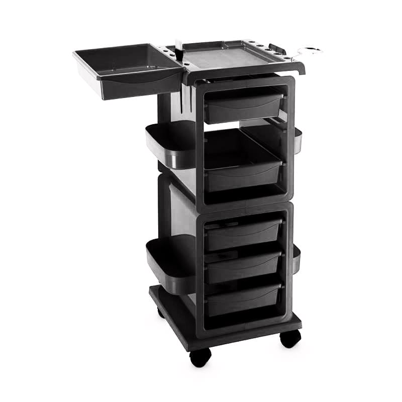 Frizerska kolica Modus izrađena su od otpornog ABS-a i imaju veliki gornji dio s utorima za četke i kistove za bojenje.