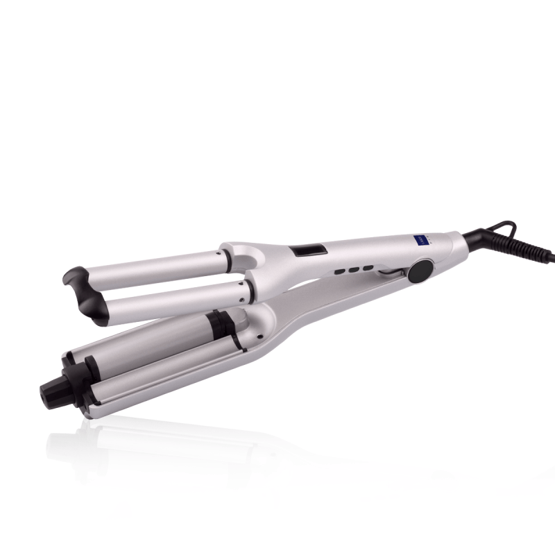 MULTI WAVE PEGLA ZA KOSU – profesionalni Multi Wave uređaj za ravnanje s ručno podesivom dubinom vala do 5 visina za stvaranje valova različitih veličina. Ploče su od titana prekrivene turmalinskom keramikom kako bi se osigurala ravnomjerna raspodjela topline. Antiopeklinski vrh omogućuje sigurno rukovanje valnom pločom. Pomoću digitalnog zaslona lako je podesiti temperaturu, a Multi Wave ploča doseže maksimalnu temperaturu od 230 °C. Nakon 60 minuta neaktivnosti, ploča se automatski isključuje. Okretni kabel olakšava rad prilikom stiliziranja, a dužina kabela je 2,5 metara.