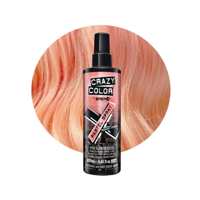 Pastel Spray Peachy Coral 250 ml privremenu boju za kosu poprskajte na vlažnu kosu, na mjesta gdje želite da boja bude. Utrljajte je u kosu pomoću rukavica, a zatim osušite fenom kako biste učvrstili boju. Ne može biti jednostavnije postići prekrasne, privremeno breskvasto tonirane pramenove!