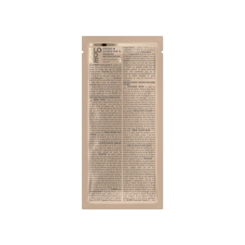 Blondme Premium Lightener 9+ proizvod za posvjetljivanje pomiješajte s aktivatorom Schwarzkopf Professional Blondme Premium Developer (7 vol. (2%) / 20 vol. (6%) / 30 vol. (9%)) u omjeru 1 : 1,5 do 1 : 2,5. Tekstura bi trebala podsjećati na glatku kremu. Zatim smjesu ravnomjerno nanesite na suhu kosu i ostavite djelovati 20–45 minuta ovisno o željenoj nijansi. Zatim temeljito isperite kosu šamponom.