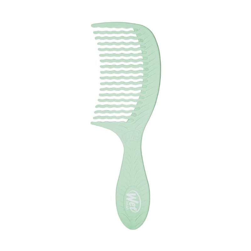 WetBrush Treatment Comb Tea Tree Oil Infused je češalj iz ‘Go Green’ linije s uljem čajevca koje smiruje vlasište i jača kosu. Tijelo češlja izrađeno je od 57% plastike biljnog podrijetla. Za nježno raščešljavanje, zaobljeni zubi su nježni prema vlasištu. WaveTooth dizajn ravnomjerno raspoređuje kosu preko zubi za lako raščešljavanje. Pogodno za ravnu, kovrčavu, teksturiranu, gustu i valovitu kosu.